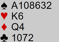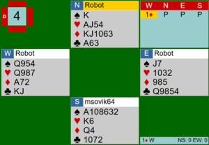 והנה דוגמה מהשבוע האחרון ב-BBO: מערב פתח 1, אחרי שני פאסים היד הגיעה אלי.