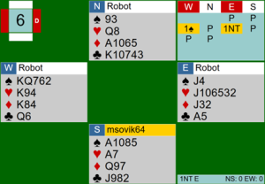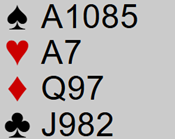 הכרוז ניסה לפתח ♥, ואני – כהרגלי – לא מיהרתי לשחק A♥ על סתם.